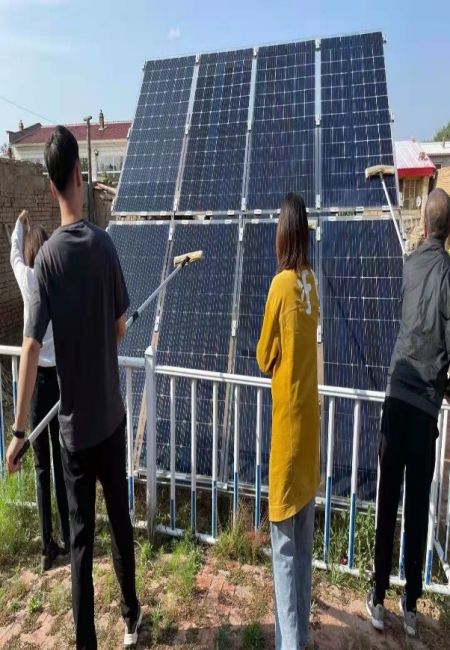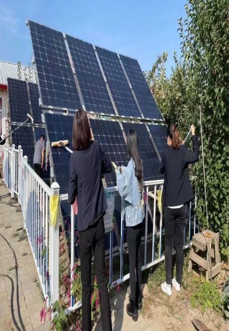 活動中,黨員們在保證光伏板正常運行及安全發(fā)電的基礎(chǔ)上,拿著抹布和拖把,穿行在光伏板之間,仔細(xì)擦拭著每一塊光伏板。扶貧戶懷著對開投集團感恩的心情向黨員干部們表示,感謝開投集團為他們打造穩(wěn)定增收的“陽光”工程,院子里的“藍(lán)板板”變成了老百姓的“金罐罐”,照亮了鄉(xiāng)村振興路。