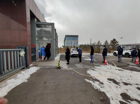 圖為愛邇公司組織廠區(qū)人員有序進行核酸檢測