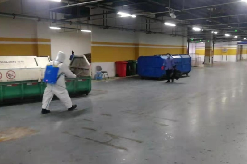 圖9為置皓公司工作人員對停車場重點區(qū)域進行消殺