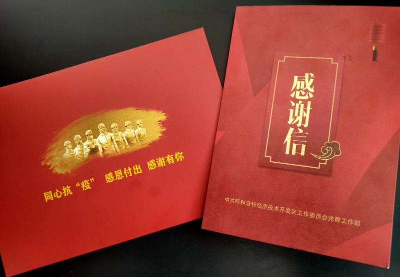 圖為開發(fā)區(qū)黨工委黨群工作部為疫情防控工作人員發(fā)來的感謝信