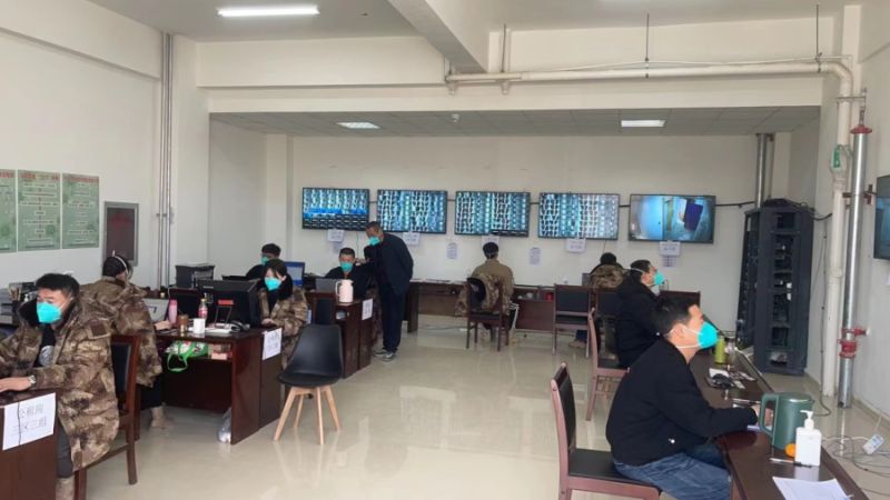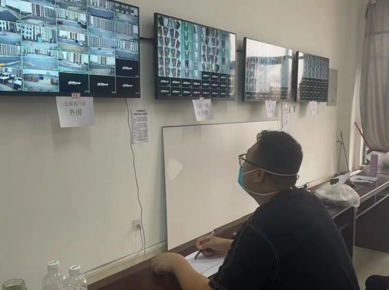 圖為投資開發(fā)集團工作人員在公租房隔離點對重點區(qū)域進行視頻監(jiān)控